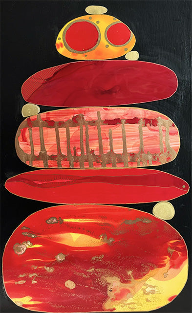 Det är kraftfulla oblyga färger som passar henne perfekt och resinet förstärker dem. Elizabeth skapar även i akryl, akvarell, kol, pastell, lera och annat.